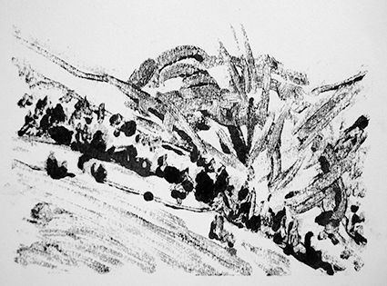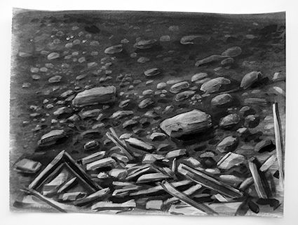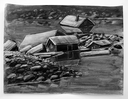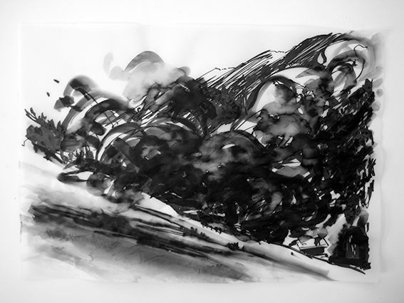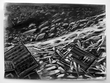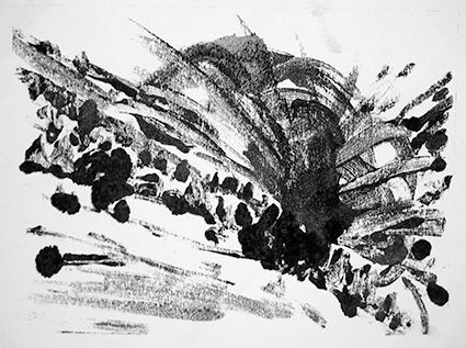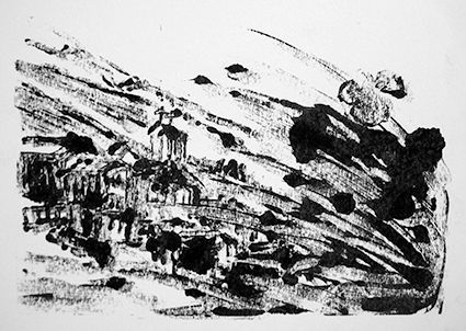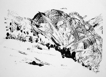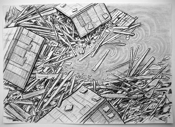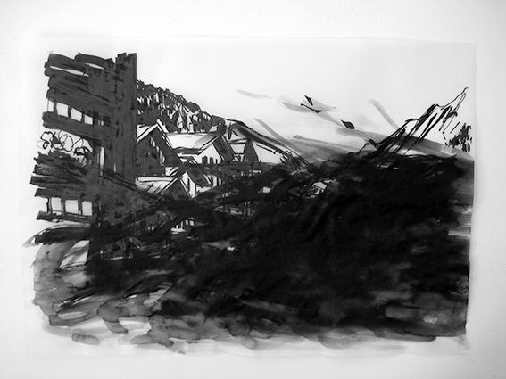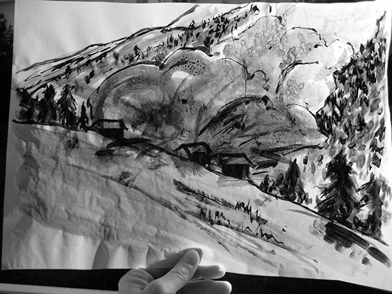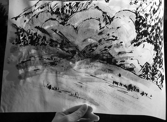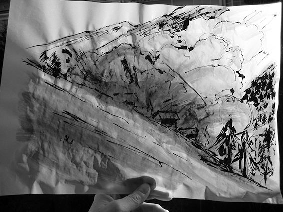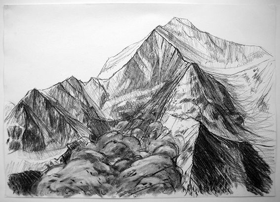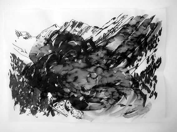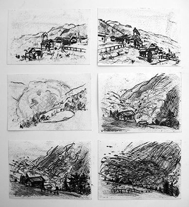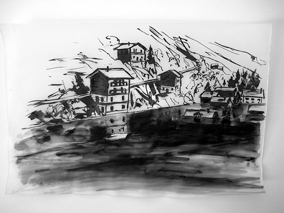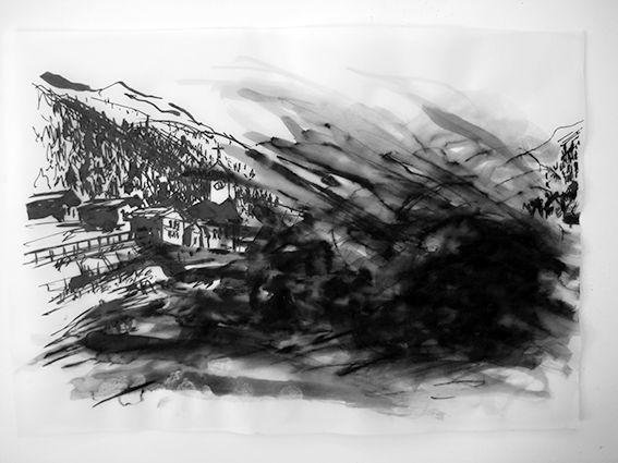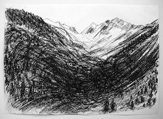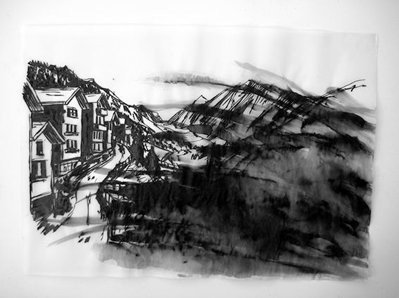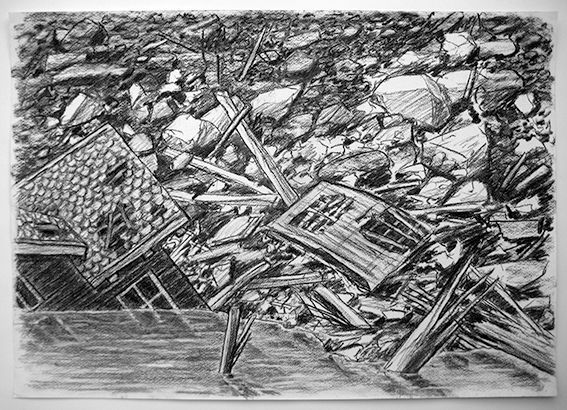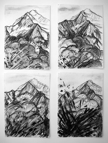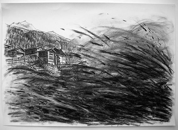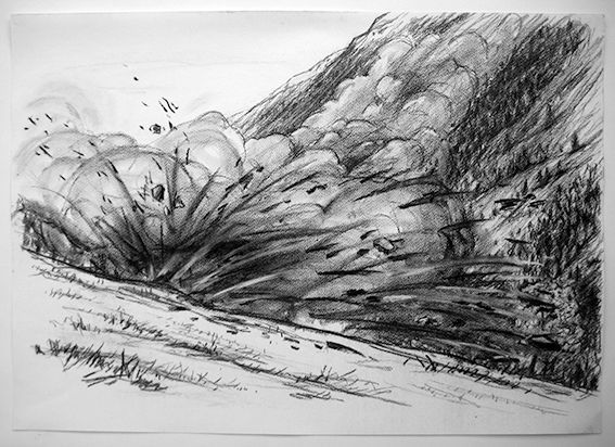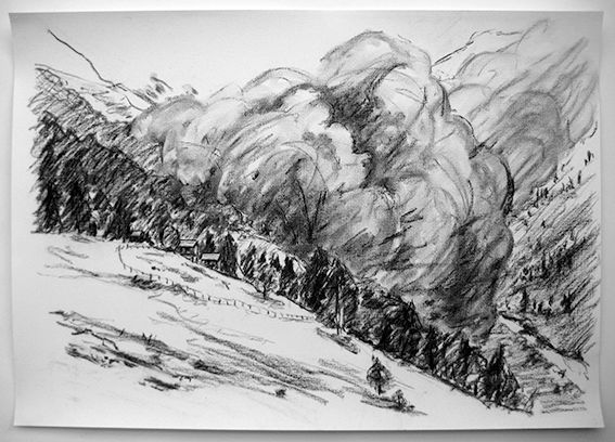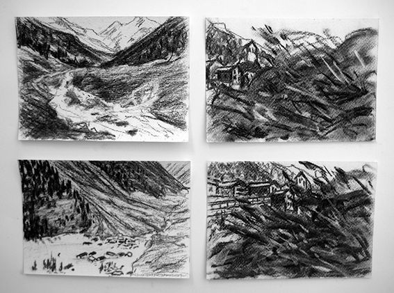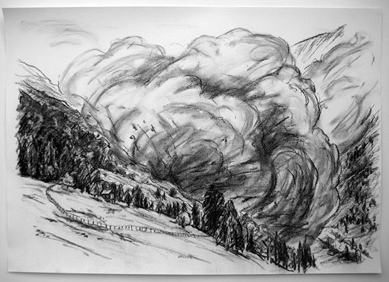 Die Katastrophe beschäftigte mich sehr. Ich begann deshalb anhand der Berichterstattungen und aus der Vorstellung verschiedene Studien zu machen und das Thema Bergsturz gestalterisch umzusetzen.